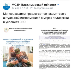 Актуальная информация о мерах поддержки в условиях СВО публикуется в социальных сетях Министерства