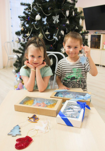 Наградили и победителей конкурса на лучшую ёлочную игрушку. Еще раз убедились, что в соцучреждениях работают очень творческие сотрудники. Своими руками из разных материалов, используя всевозможные техники, они создали целые новогодние композиции, например, - зимнего леса с уютной избушкой; медвежонка, катающегося на коньках и др. Среди игрушек, представленных на конкурс, конечно же, было много драконов с добрыми глазами.