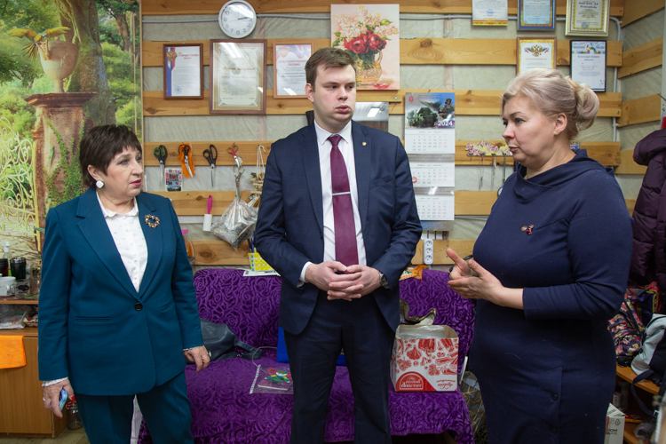Очень символично, что встреча с активистами прошла в преддверии Дня защитника Отечества. Жены и матери бойцов российской армии также защищают нашу страну, внося свой посильный вклад в общее дело. «Наше место – здесь», – так говорят женщины у станков по плетению.