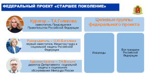 Федеральный проект представляет собой комплекс мер, направленных на решение таких приоритетных задач, как развитие социальных услуг и вовлечение граждан старшего возраста в активную жизнедеятельность за счет обеспечения качественного ухода и различных образовательных и просветительских проектов.