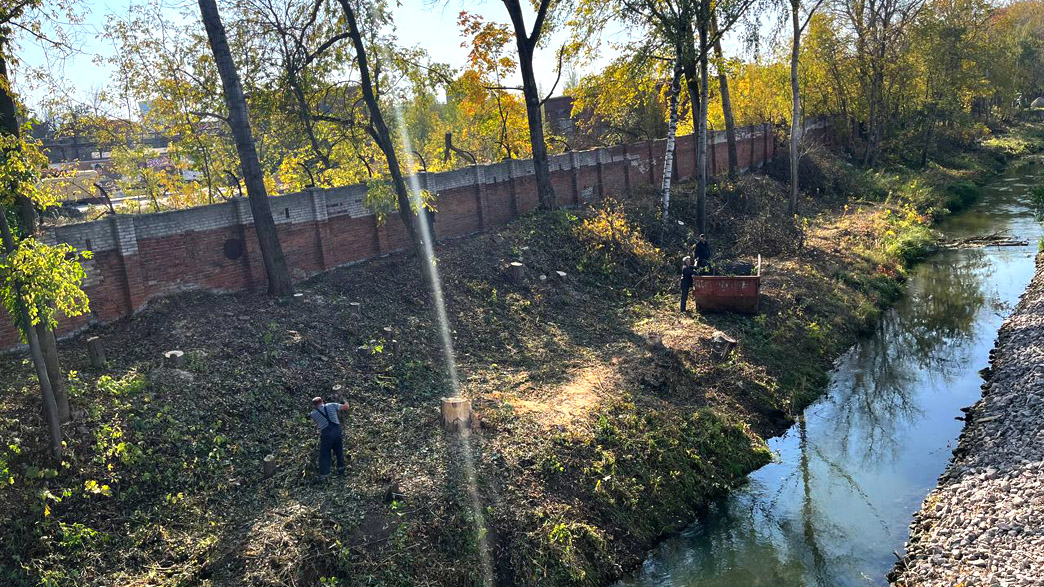 «Пять бригад сейчас занимаются опиловкой аварийных и сухих деревьев, вывозом веток, покосом травы и подбором мусора. Техника занимается выравниванием и укреплением грунта на склонах, а строители завершают работу по строительству моста и пешеходных дорожек».Видимо, под впечатлением пространств, которые появились вдоль Рпенского проезда, и возможностью их использования, у властей открылись креативные способности. Александр Волков написал в своих социальных сетях, что у руководства Фрунзенского района в ходе инспекции возникла идея преобразовать кирпичный забор вдоль химического завода в некий арт-объект. Эту идею решили не откладывать в долгий ящик и обсудить на ближайшем совещании с главой города Владимира Дмитрием Наумовым.