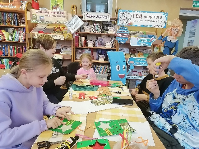 Затем с ребятами был проведён мастер-класс «Подарок папе» по изготовлению праздничных открыток ко Дню защитника Отечества. По окончании работы получились замечательные подарки для пап, дедушек и братьев, сделанные своими руками!