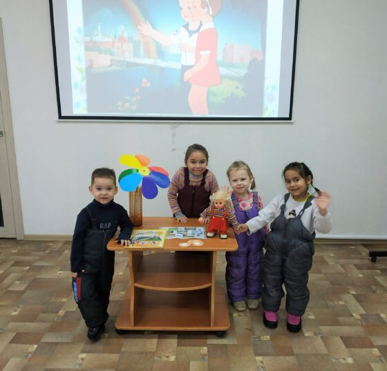 17 января в универсальной детской библиотеке прошли громкие чтения «Сказки В. Катаева» для воспитанников из соц. приюта. Библиотекарь младшего абонемента познакомила юных читателей с творчеством В. Катаева, остановилась на наиболее известных произведениях автора, среди которых «Цветик — семицветик», являющийся настоящим шедевром детской литературы. Дети вместе с главной героиней Женей и волшебным цветком отправились в увлекательное путешествие по городу. В этом им помогала маршрутная карта. Повторили ребята маршрут Жени от магазина, где были куплены баранки для всей семьи. Очутились на Северном полюсе, где повстречались с белыми медведями. С большой увлечённостью отвечали ребята на вопросы викторины, преодолевали различные препятствия на своем пути. За каждое выполненное задание получали яркий лепесток цветика — семицветика с буквой. Получив последний лепесток, ребята все вместе повторили заклинание из книги Валентина Катаева: