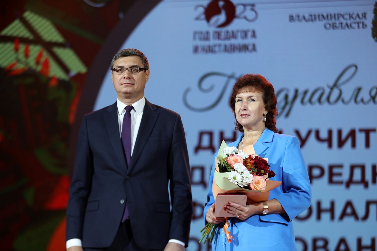 В образовательных организациях, учреждениях культуры и спорта Владимирской области трудятся более 30 тысяч педагогов и наставников. Более 650 из них носят почётные звания «Заслуженный учитель», «Заслуженный работник культуры», «Заслуженный работник физической культуры». Владимирские педагоги неоднократно становились финалистами и победителями самых престижных всероссийских конкурсов. Так, в этом году директор школы №1 округа Муром Ирина Кучина вошла в топ-10 лауреатов конкурса «Директор года – 2023», а педагог школы №1 города Гусь-Хрустальный Артём Гусев в масштабах страны признан лучшим учителем родного языка и родной литературы.