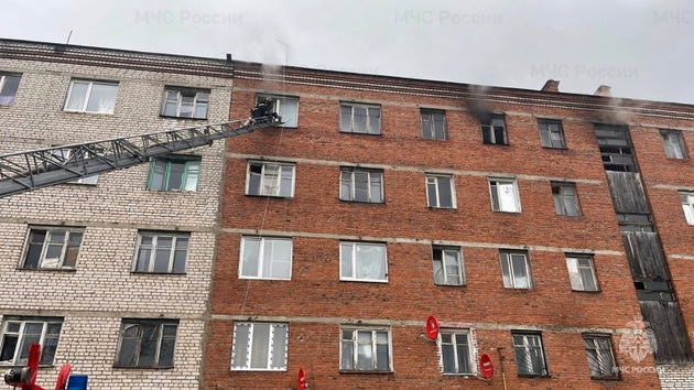 При помощи автолестницы сотрудники МЧС проникли в горящее помещение и ликвидировали возгорание. При этом было спасено два человека.