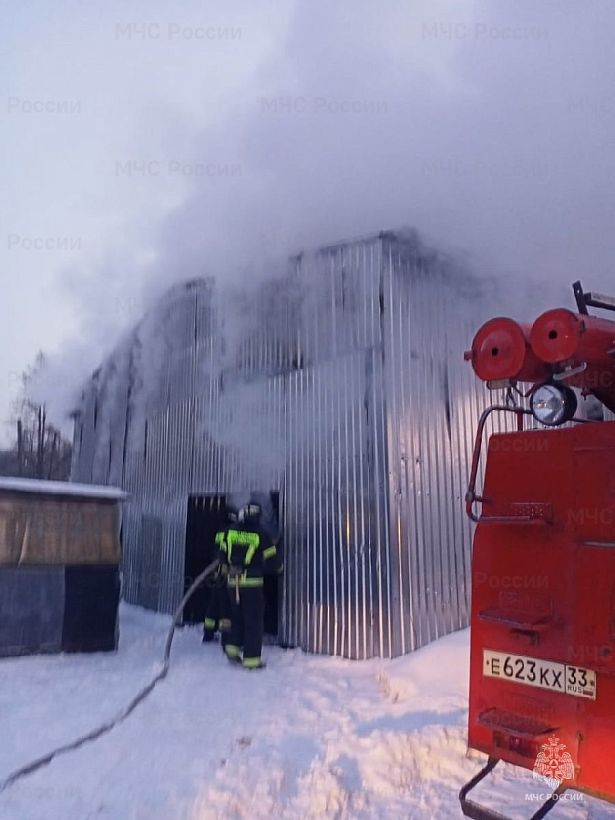 Сегодня в 6 часов 55 минут поступил сигнал из Меленок о возгорании в производственном здании на улице Свердлова,