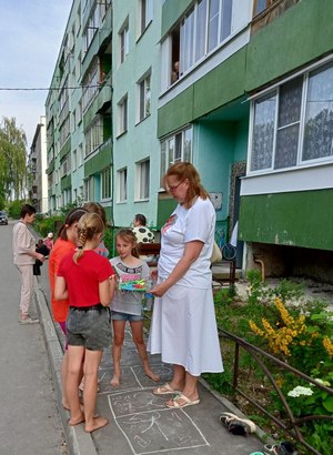Дети приняли участие в акции «Рисунки на асфальте» и играли в русскую игру – «классики». За активное участие они получили в подарок книжки и закладки для книг, чтобы вдохновить их на дальнейшее чтение и творчество. Жители микрорайона с радостью выбирали книги из «Библиотеки под открытым небом».