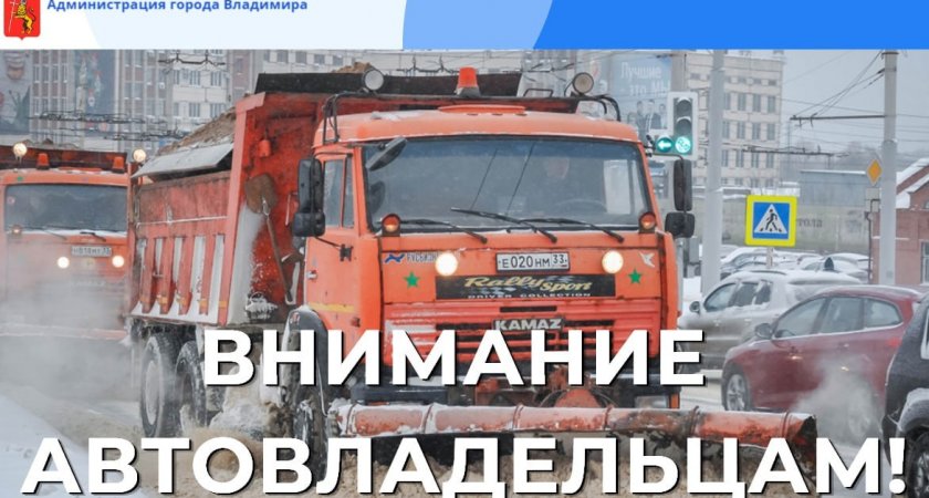 Администрация Владимира просит горожан убрать автомобили с 3 парковок и 7 улиц
