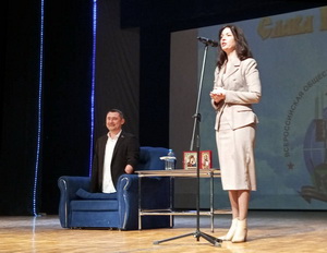 Алексей Талай рассказал о своем жизненном пути, трудностях, которые ему удалось преодолеть, силе воли и целеустремленности, ответственности за принятые решения. Он умеет вдохновлять людей, собственным примером демонстрируя, что ничего невозможного нет. Алексей Талай с гордостью продемонстрировал значок с изображением герба Коврова, поблагодарил со сцены руководителя Управления культуры и молодежной политики города Ирину Калигину, сделавшую этот памятный подарок.