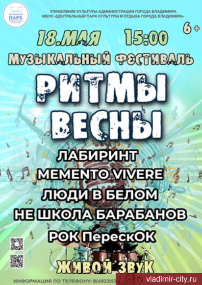 Центральный парк культуры и отдыха города Владимира приглашает на музыкальный фестиваль «Ритмы весны – 2024»