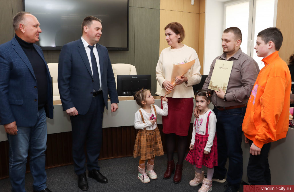 Сегодня глава города Владимира Дмитрий Наумов вручил свидетельства о праве на получение социальной выплаты семьям молодых владимирцев.
