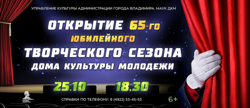 25 октября в 18.30 Дом культуры молодежи отмечает своё 65-летие! В далёком 1958 году для тружеников «Химзавода» и всех жителей города Владимира был построен Дом культуры, но открыт он был официально в 1959 году. За годы существования это место стало любимым для многих поколений Владимирцев.