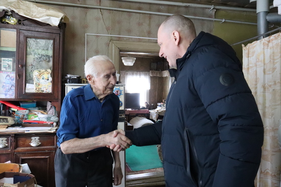 Глава администрации Киржачского района Сергей Будкин поздравил с 95-летием и вручил Поздравительный адрес от Президента Российской Федерации В. В. Путина Алексею Николаевичу Никишину.
