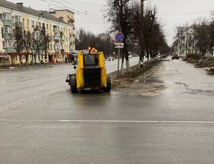 Погрузчик (щетка), бригада задействованы в наведении порядка на пл. 200-летия.