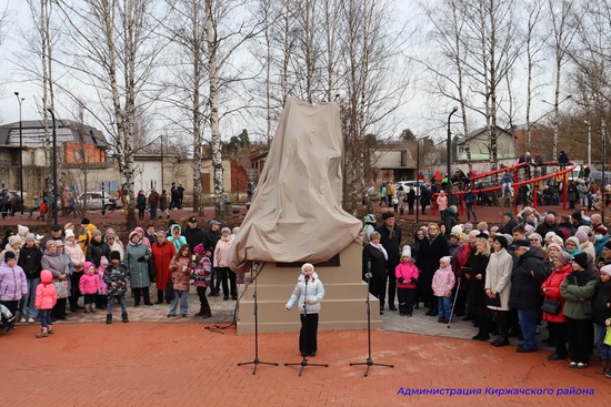 Сегодня в Киржаче в торжественной обстановке состоялось открытие площади купцов Соловьевых в мкр. Шелковый Комбинат.