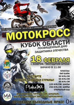 18 февраля на территории спортивного комплекса «Мотодром» состоится 2 этап кубка Владимирской области 58-го традиционного зимнего мотокросса, посвященного Дню защитника Отечества.