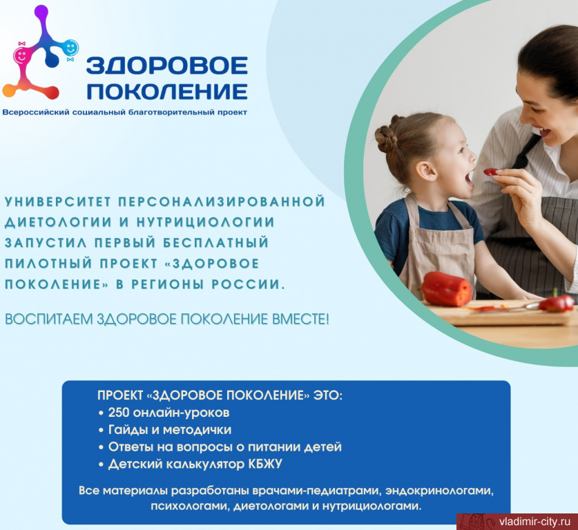 Университет персонализированной диетологии и нутрициологии запустил первый пилотный проект «Здоровое поколение». В его рамках педиатры, эндокринологи, диетологи и нутрициологи дают ответы на вопросы о ведении здорового образа жизни, осознанном подходе к формированию пищевых привычек, вопросах физического и психологического развития детей, формировании иммунитета.