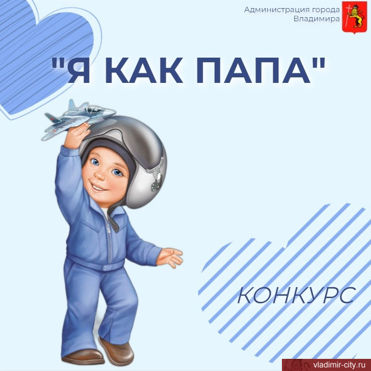 Жителям города предлагают принять участие в онлайн конкурсе «Я как папа», посвященном Дню защитника Отечества. Он проходит в официальной группе администрации города Владимира ВКонтакте.