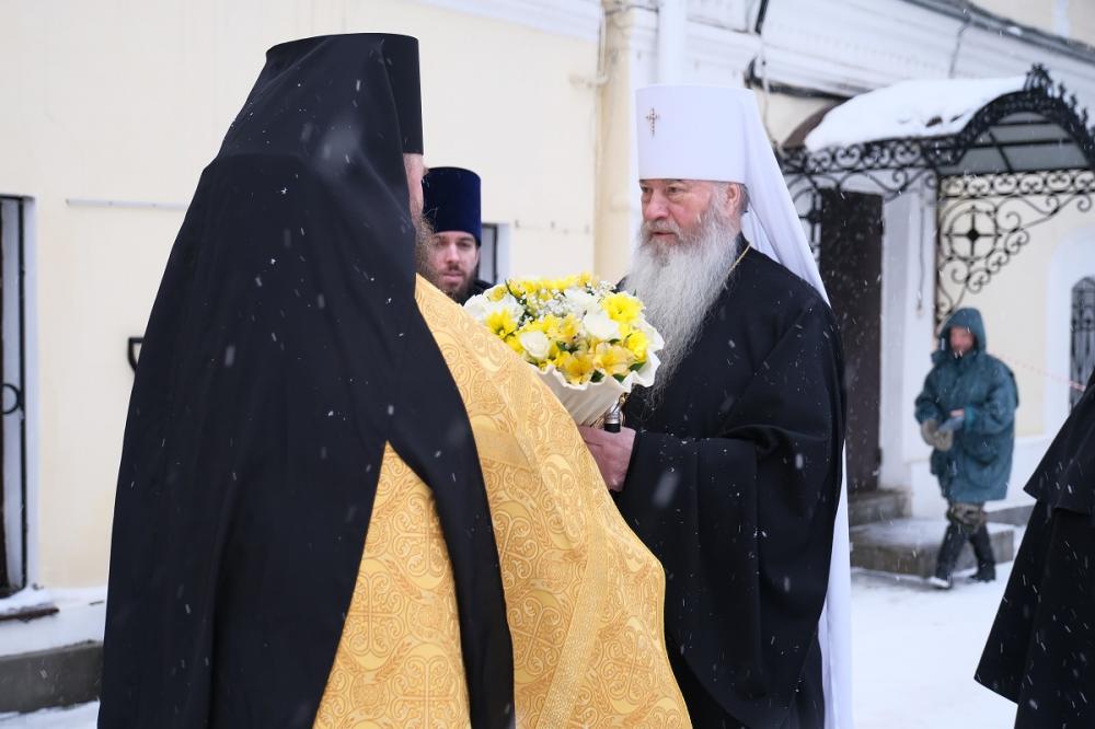 Его Высокопреосвященству сослужили наместник монастыря игумен Кирилл (Сурков) и духовенство обители.