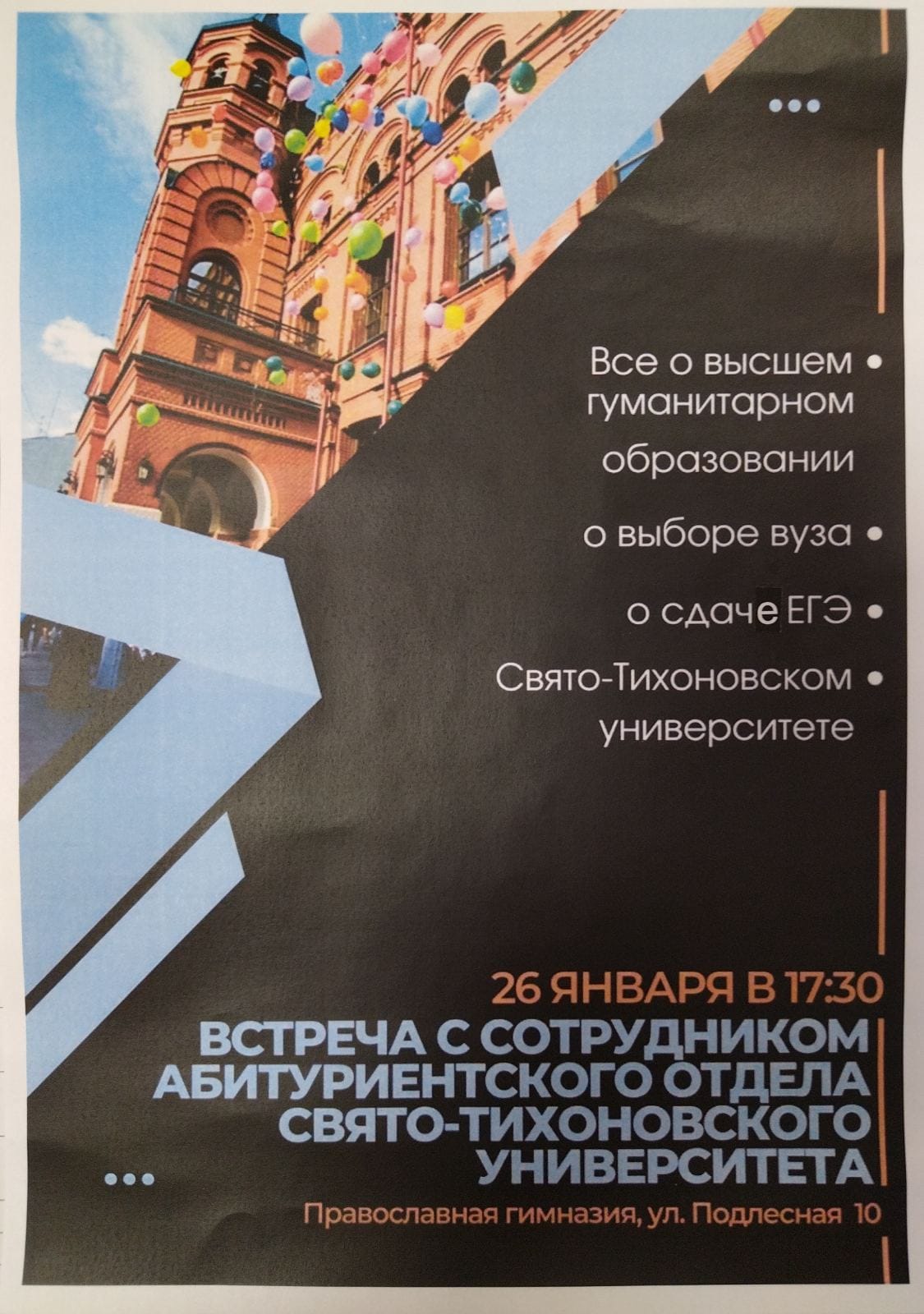 Родителей выпускников приглашают на встречу с представителями Православного Свято-Тихоновского Гуманитарного университета