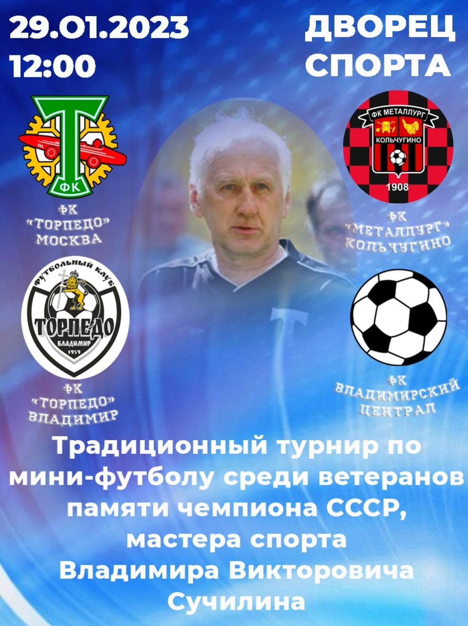 Ветераны владимирского «Торпедо» приняли участие в традиционном турнире по мини-футболу памяти воспитанника владимирского футбола, чемпиона СССР Владимира Викторовича Сучилина.