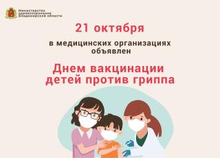 21 октября в медицинских организациях объявлен днем вакцинации детей против гриппа.
