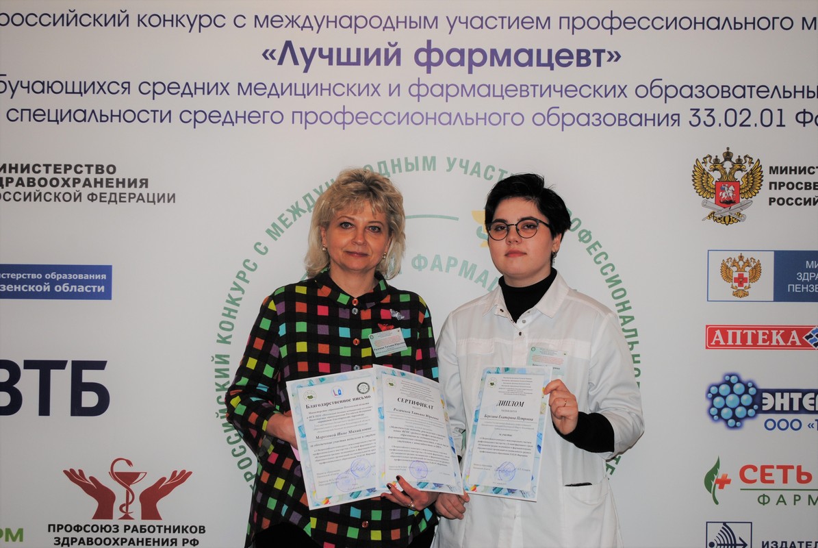 19-21 апреля 2023 года на базе Пензенского базового медицинского колледжа Минздрава РФ состоялся I Всероссийский конкурс профессионального мастерства «Лучший фармацевт» среди обучающихся средних медицинских и фармацевтич