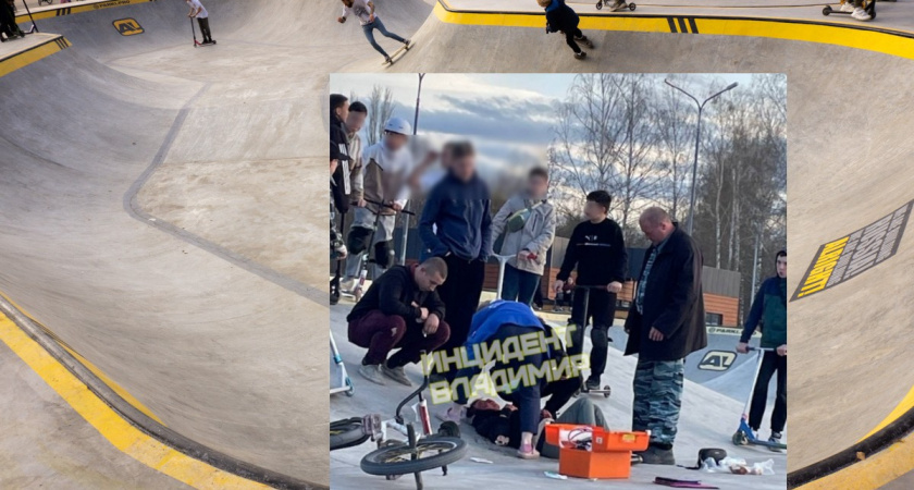Сегодня в группе ВК Инцидент Владимир появилось фото, как упавшему в скейт-парке подростку оказывают медицинскую помощь. При этом на фото только у одного подростка на голове защитный шлем! Как следует из комментариев, юный велосипедист столкнулся со сверстником на самокате. Свидетели пишут, что у него рассечен лоб рассечён, было много крови, и он даже "не смог двигаться".