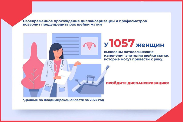 В 2022 году было обследовано более 21 тысячи пациенток из Владимирской области. В результате исследований у 1057 женщин были выявлены патологические изменения эпителия шейки матки, которые в дальнейшем могут привести к раку. Кроме того, обнаружено 30 подтверждённых случаев, более половины из которых – на 3-4 стадии!