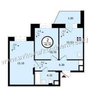 - Общая площадь: 48.7 м²