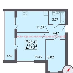 - Общая площадь: 48.9 м²