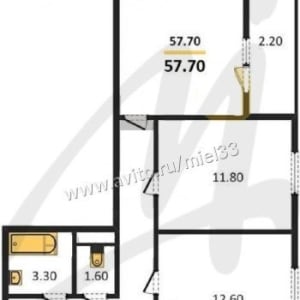 - Общая площадь: 57.7 м²