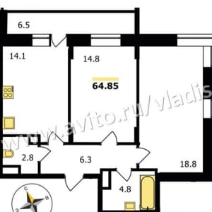 - Общая площадь: 65 м²